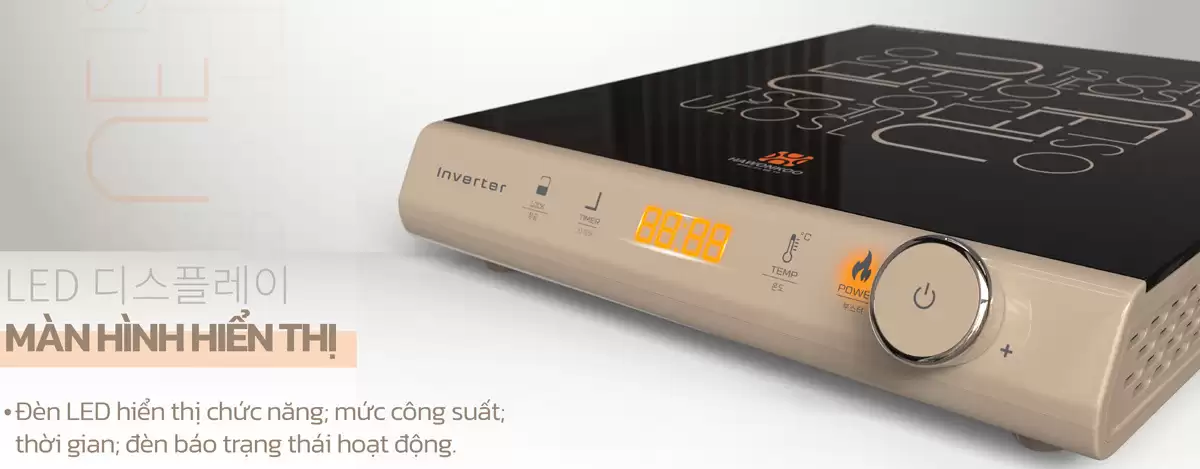 Bếp từ đơn Hawonkoo SEOUL-CEH-108-INVERTER được trang bị đèn LED hiển thị sắc nét, mang lại khả năng quan sát trực quan và dễ dàng theo dõi trong suốt quá trình nấu: |