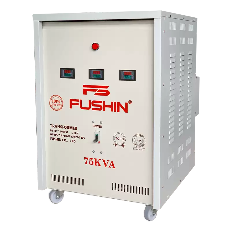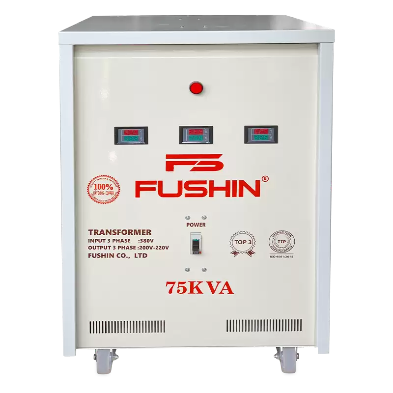 Biến áp 3 pha FUSHIN 75KVA – Giải pháp tối ưu cho nguồn điện công nghiệp, đảm bảo hiệu suất cao, an toàn và bền bỉ theo thời gian.