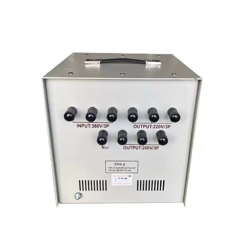 Biến áp tự ngẫu Fushin có chức năng đổi nguồn 3 pha 380V sang 3 pha 200V và 220V, chuyên dùng cho các thiết bị nội địa của Mỹ, Nhật, Đài Loan… Máy vận hành êm, hiệu suất cao, không tốn điện năng khi không tải, phù hợp cho nhà xưởng, dây chuyền sản xuất và các hệ thống máy móc công nghiệp.