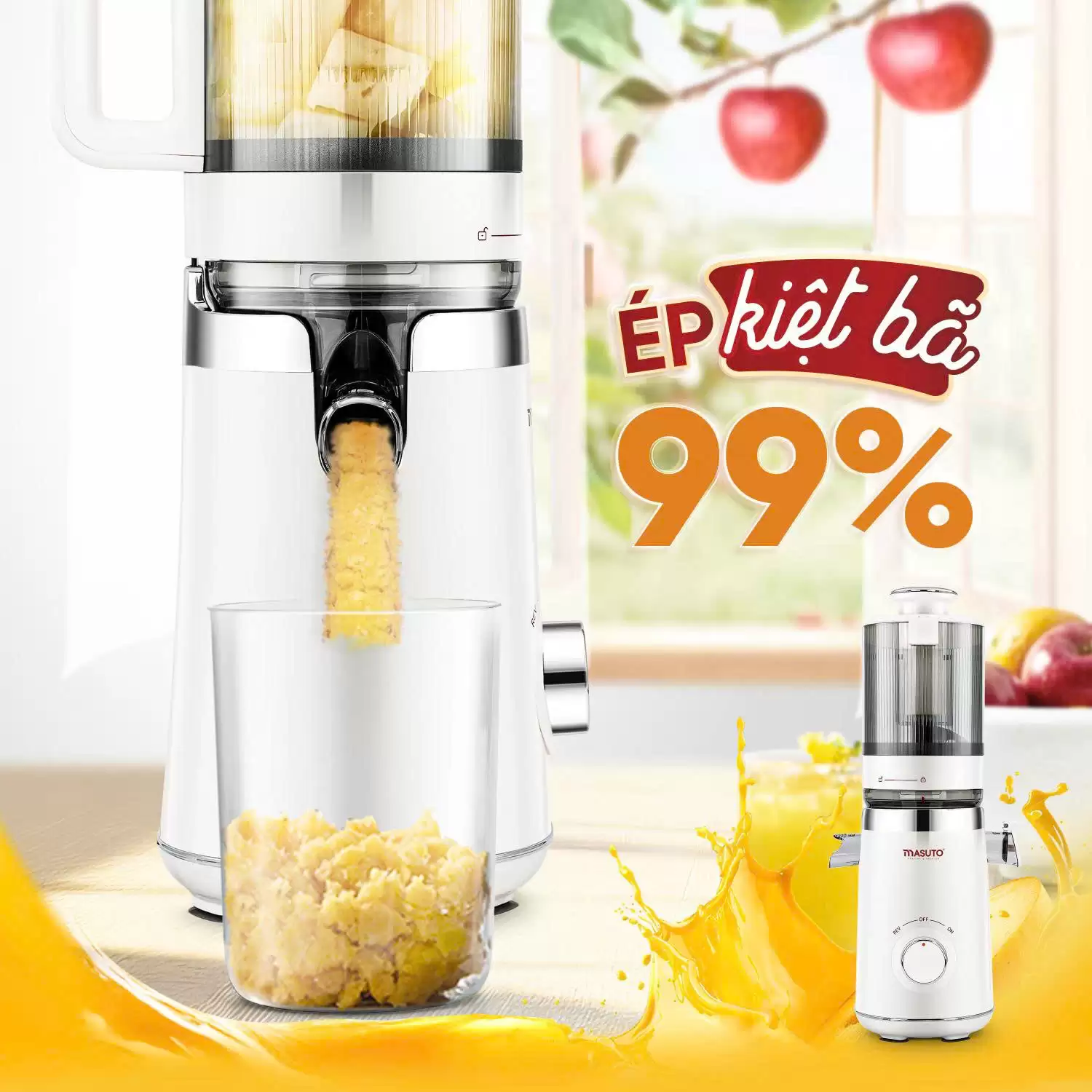 Máy ép chậm Masuto MS Fresh Ép Nguyên Quả Công Suất 150W, Đường Kính Ống Tiếp Cực Đại 120mm