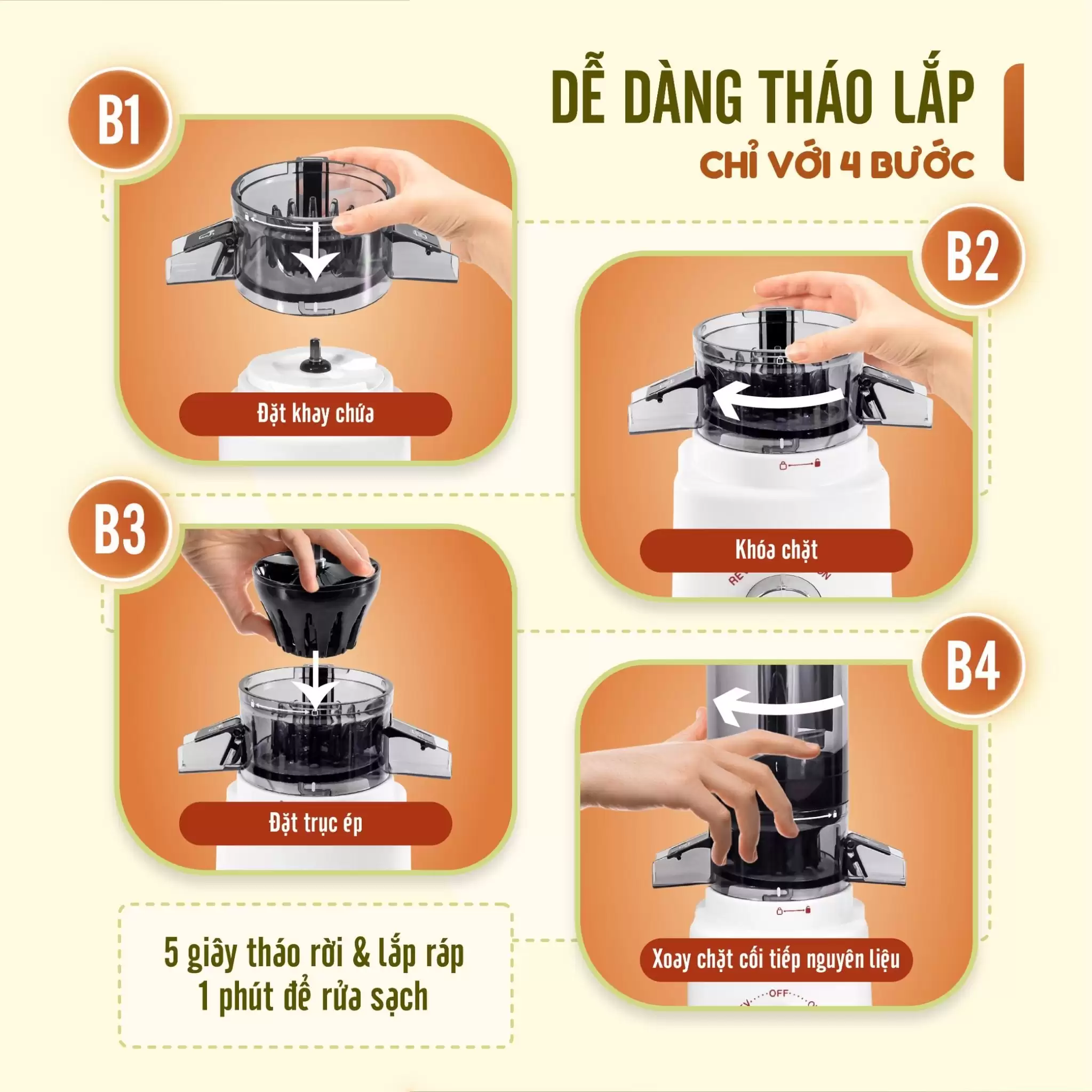 - Tính năng: 3 tính năng thông minh: Ép hoa quả, làm nước detox, làm kem