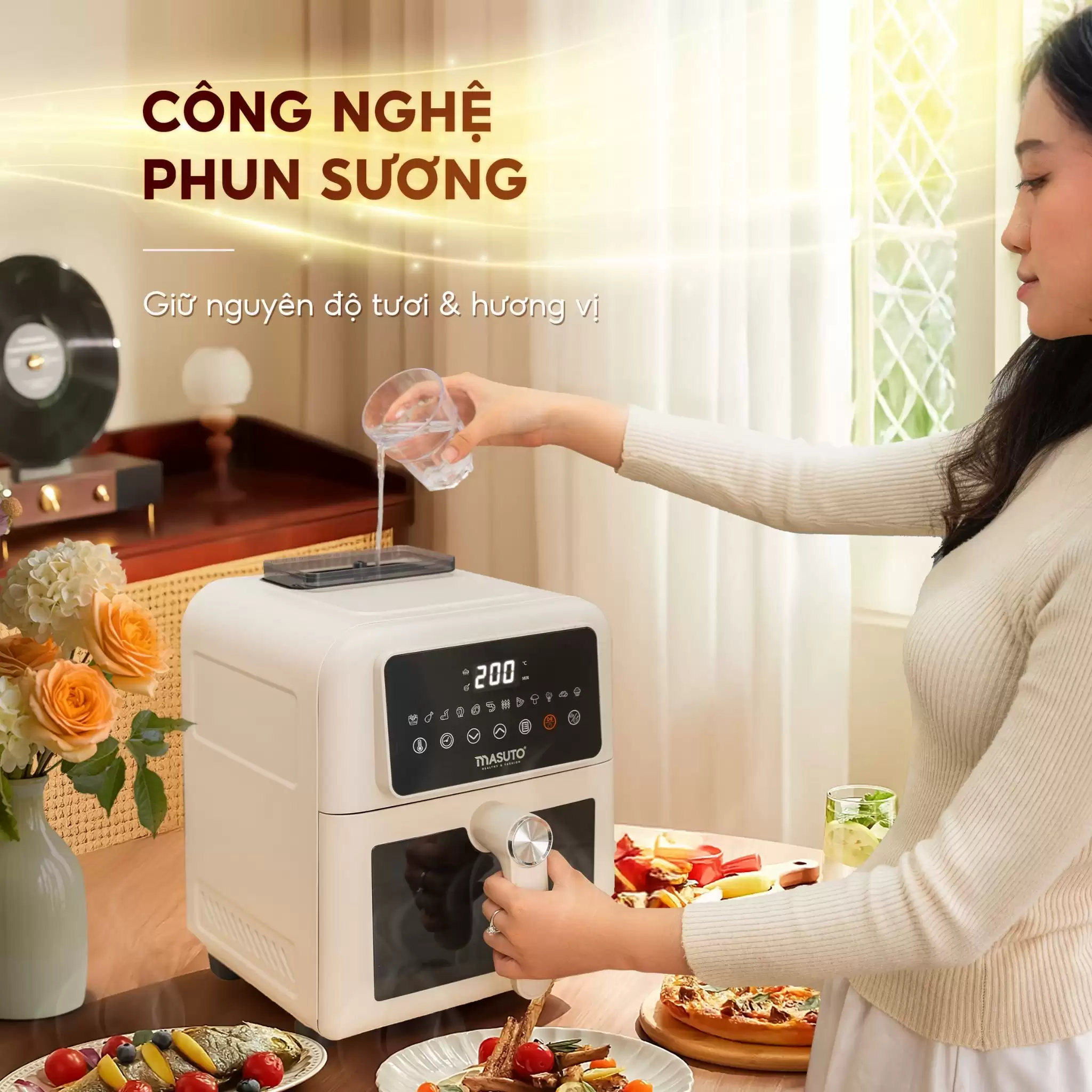 Nồi chiên không dầu phun sương Masuto MSKing 6L – 2 tầng đốt không cần trở lật