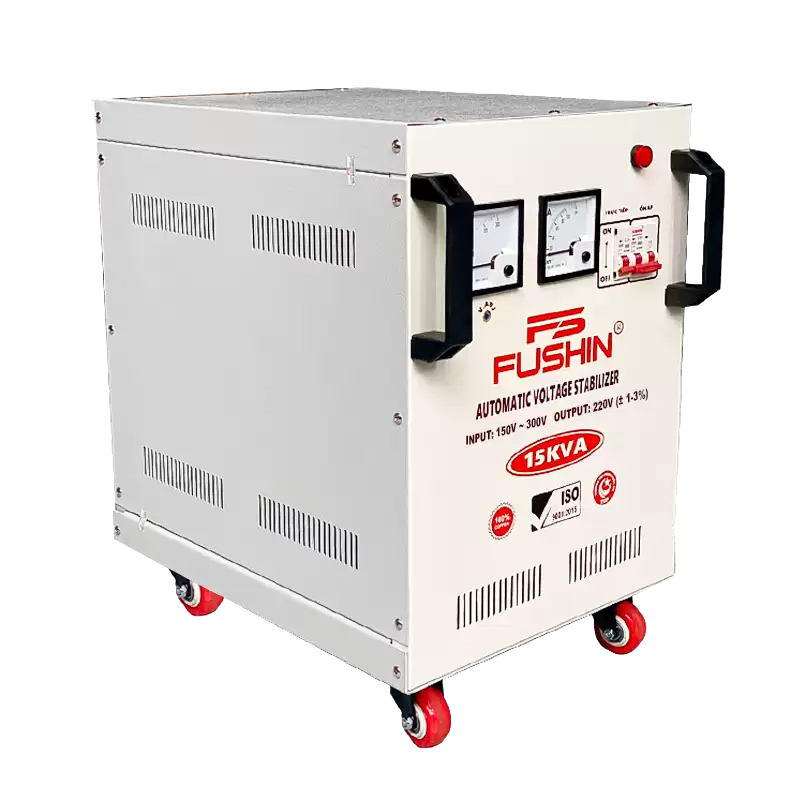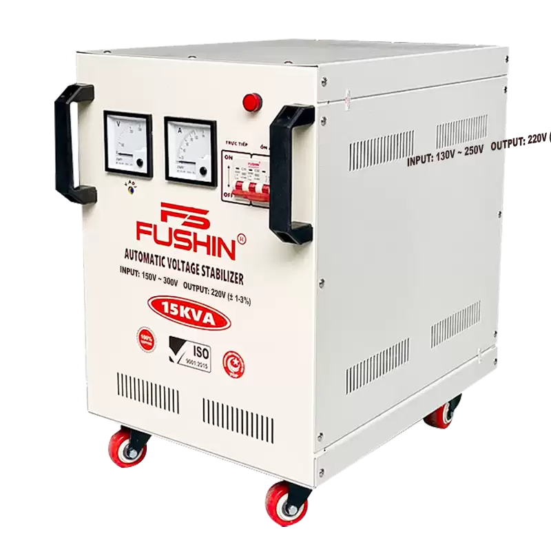 Ổn áp Fushin 15KVA là hàng mới 100%, sản xuất theo tiêu chuẩn 111711.QMS.CN17 (tiêu chuẩn xuất khẩu).
