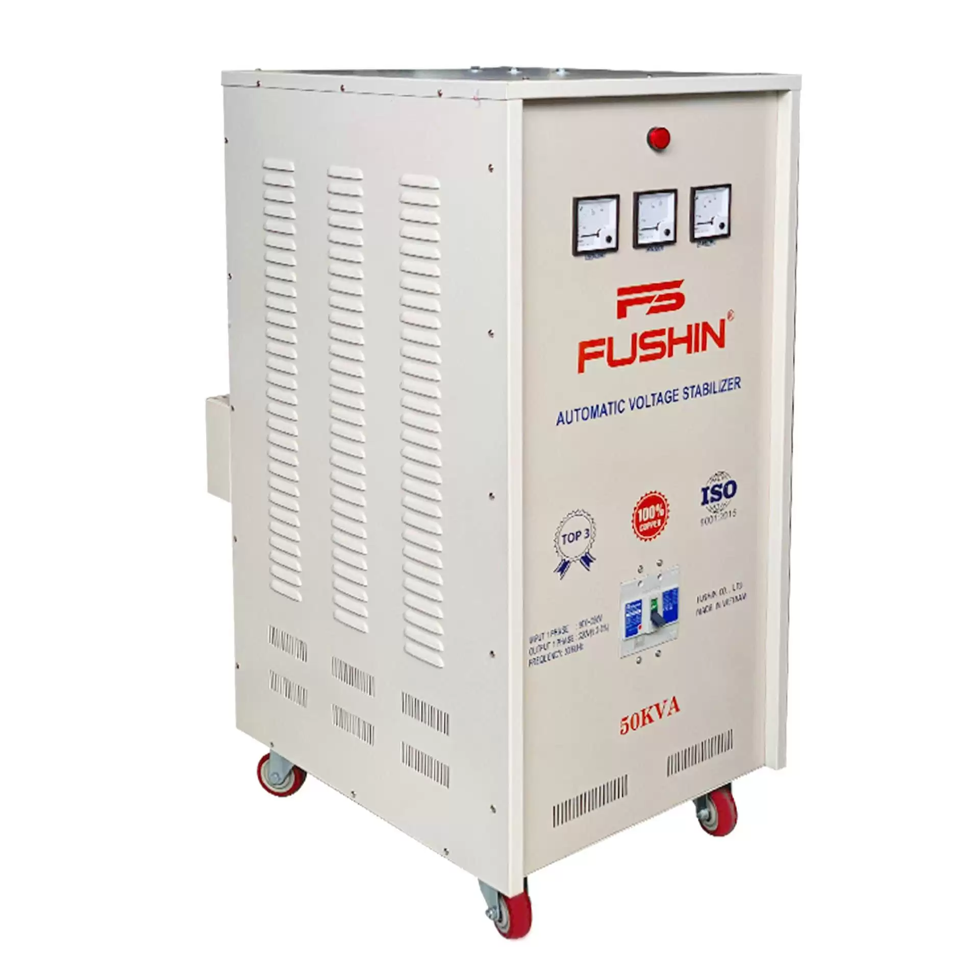 Ổn áp Fushin 50KVA là hàng mới 100%, sản xuất theo tiêu chuẩn 111711.QMS.CN17 (tiêu chuẩn xuất khẩu).