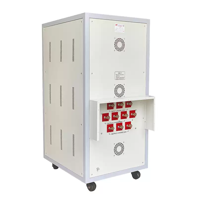 Ổn áp 3 pha 100KVA được sản xuất theo tiêu chuẩn 111711.QMS.CN17, đảm bảo chất lượng cao và độ bền vượt trội. Đây là dòng ổn áp công nghiệp được nhiều doanh nghiệp tin dùng nhờ hiệu suất ổn định và khả năng tiết kiệm điện năng tối ưu.